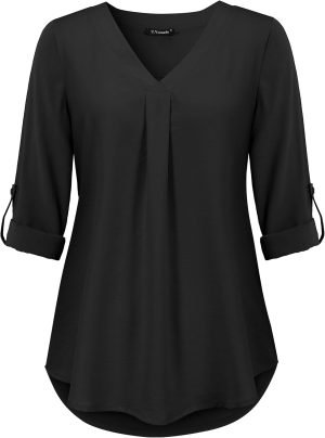 U.Vomade Women’s 3/4 Cuffed Sleeve Chiffon V Neck Casual Shirts for Women S-XL