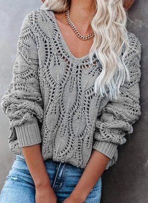 Fall Sweaters Round Neck Crochet Hollow Out Cute Winter Pullover Sweaters for Women Trendy 2024