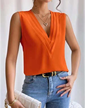 Sleeveless Chiffon Tops for Women Summer Triple V-neck T Shirts Business Office Dressy Outfit Blouse