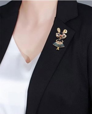 Rhinestone Lady Rabbit Brooch Pin for Women Girls Fashion Crystal Bunny Animal Brooches Lapel Pins Dainty Cute Christmas Graduation Honors Day Easter Jewelry Gift for Daughter Teacher Students