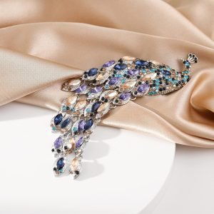 Rhinestone Peacock Tassel Brooch Pins for Women Fashion