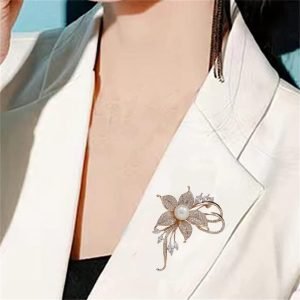 Rhinestone Pearl Flower Brooch Femininity Brooch Art Brooch Flower Brooch Pin Sweater Accessories for Women, Girls, Ladies