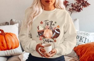 Tis the Season Fall Sweatshirt for Women Fall Football Long Sleeve Shirt Causal Autumn Pumpkin Pullover Tops