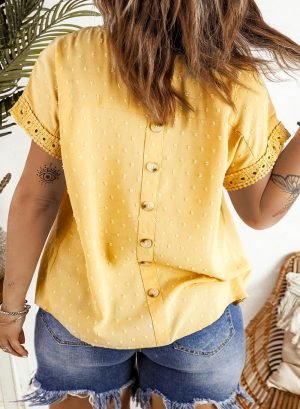 Women Plus Size Tops Crewneck Short Sleeve Lace Crochet Loose Casual Summer Blouses Shirts(1X-5X)