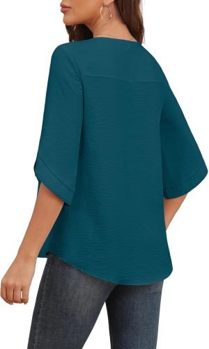 Women’s 3/4 Sleeve Chiffon Blouses for Women Dressy Casual, V Neck Double Layers Chiffon Blouses 2024, Tunic Tops