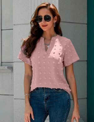 Womens Tops Dressy Casual V Neck Ruffle Short Sleeve Blouse Business Casual Tops Chiffon Flowy Shirt Cute Summer Tops